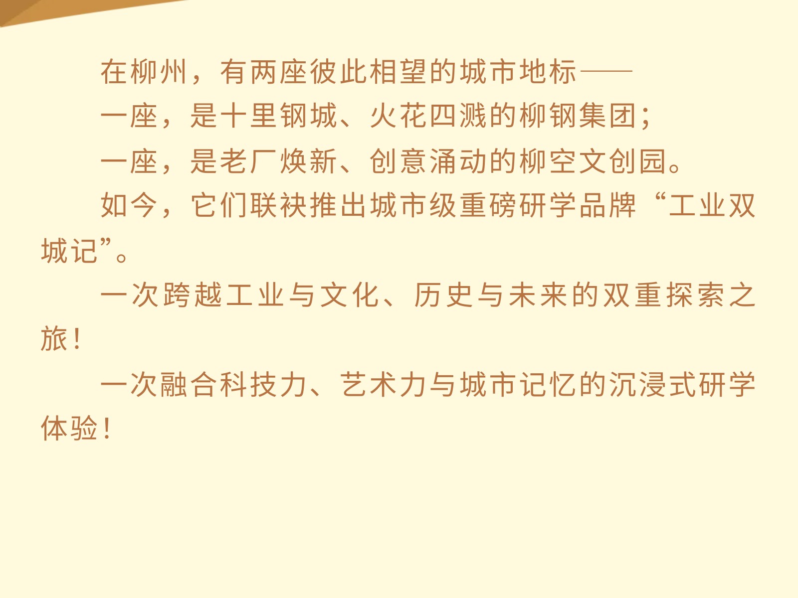 柳鋼+柳空|“工業(yè)雙城記”聯合研學品牌震撼上線! 發(fā)布時間:2025年04月25日 16時來源:本站原創(chuàng)瀏覽:59 人次