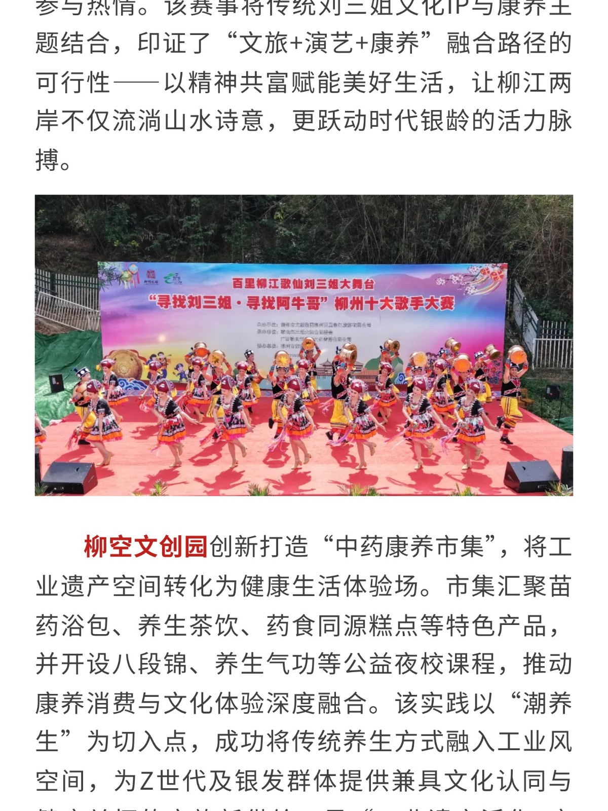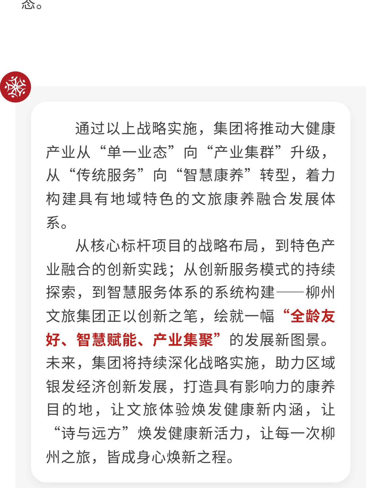 柳州文旅集團(tuán)推動文旅康養(yǎng)深度融合,培育大健康產(chǎn)業(yè)集群新優(yōu)勢 發(fā)布時(shí)間:2025年09月05日 22時(shí)來源:本站原創(chuàng)瀏覽:194 人次