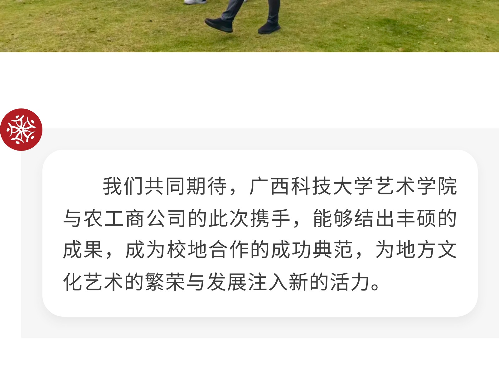 【校企攜手 共育英才】廣西科技大學藝術學院與柳州農工商公司正式簽署校企合作協(xié)議 發(fā)布時間:2025年11月02日 10時來源:本站原創(chuàng)瀏覽:86 人次