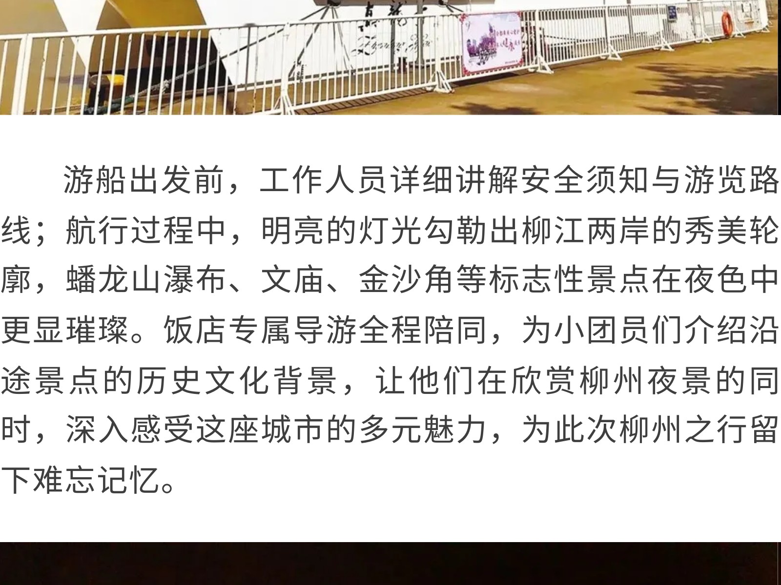 柳州飯店暖心接待北?!靶『B荨保恕罢纨?zhí)枴惫操p柳江夜景暢談雙城情誼 發(fā)布時間:2025年11月07日 10時來源:本站原創(chuàng)瀏覽:85 人次