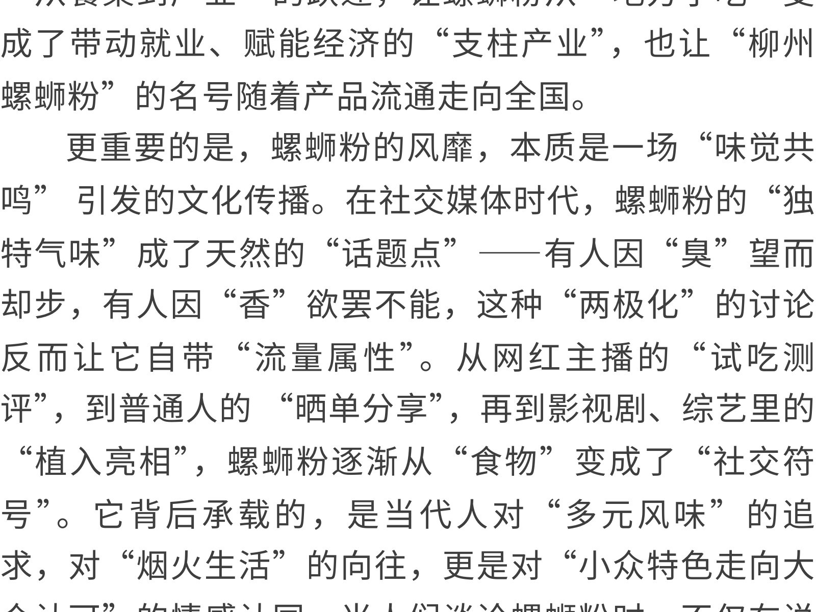 一碗螺螄粉風靡全國:解碼柳州味覺 IP 背后的 “出圈密碼” 發(fā)布時間:2025年11月19日 15時來源:本站原創(chuàng)瀏覽:22 人次