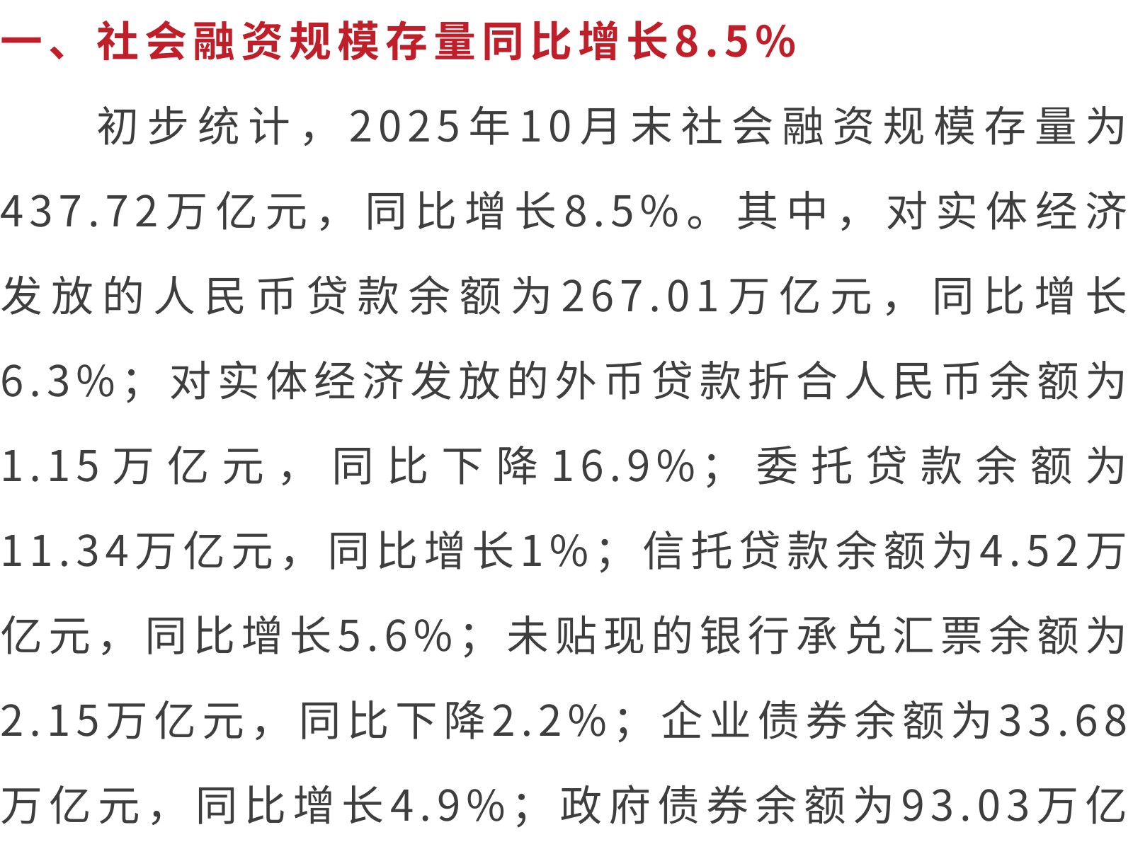 2025年10月金融統(tǒng)計(jì)數(shù)據(jù)報(bào)告 發(fā)布時(shí)間:2025年11月26日 17時(shí)來源:本站原創(chuàng)瀏覽:14 人次
