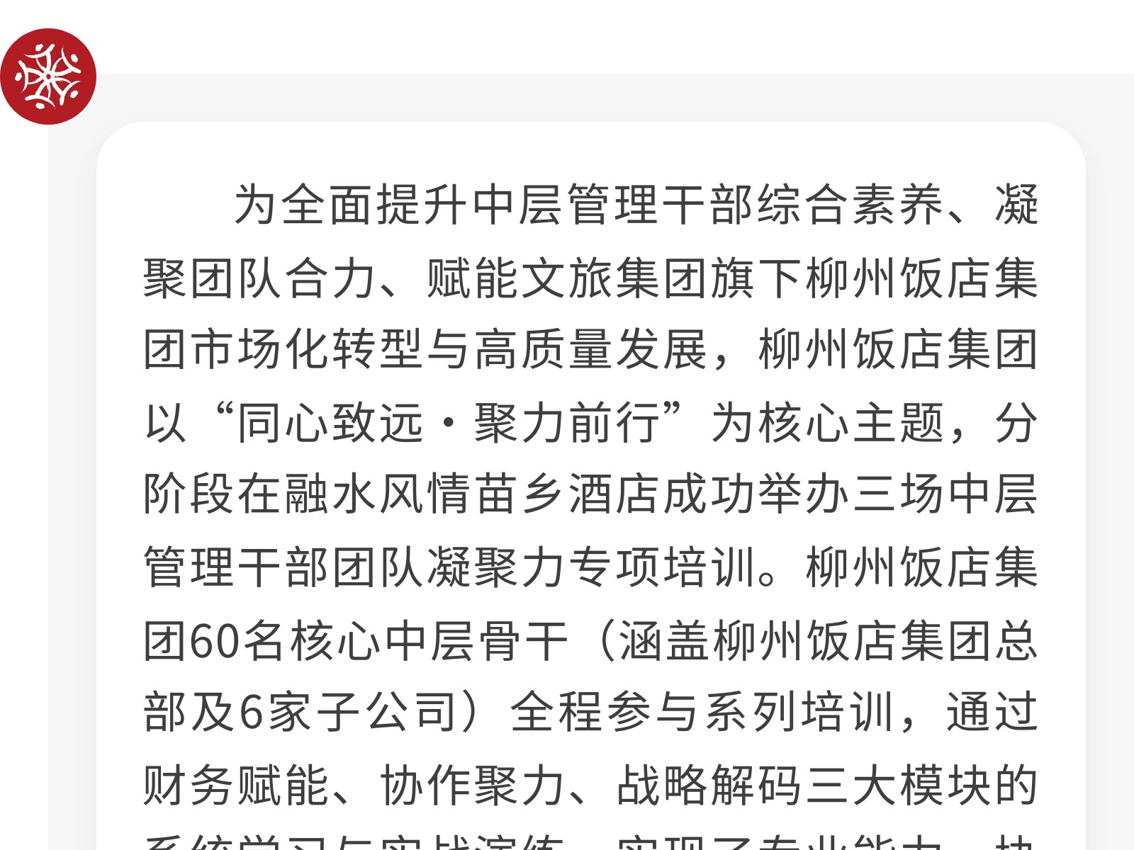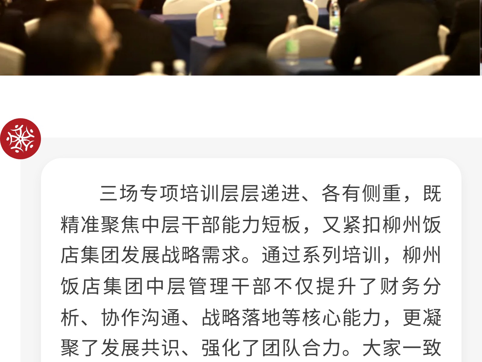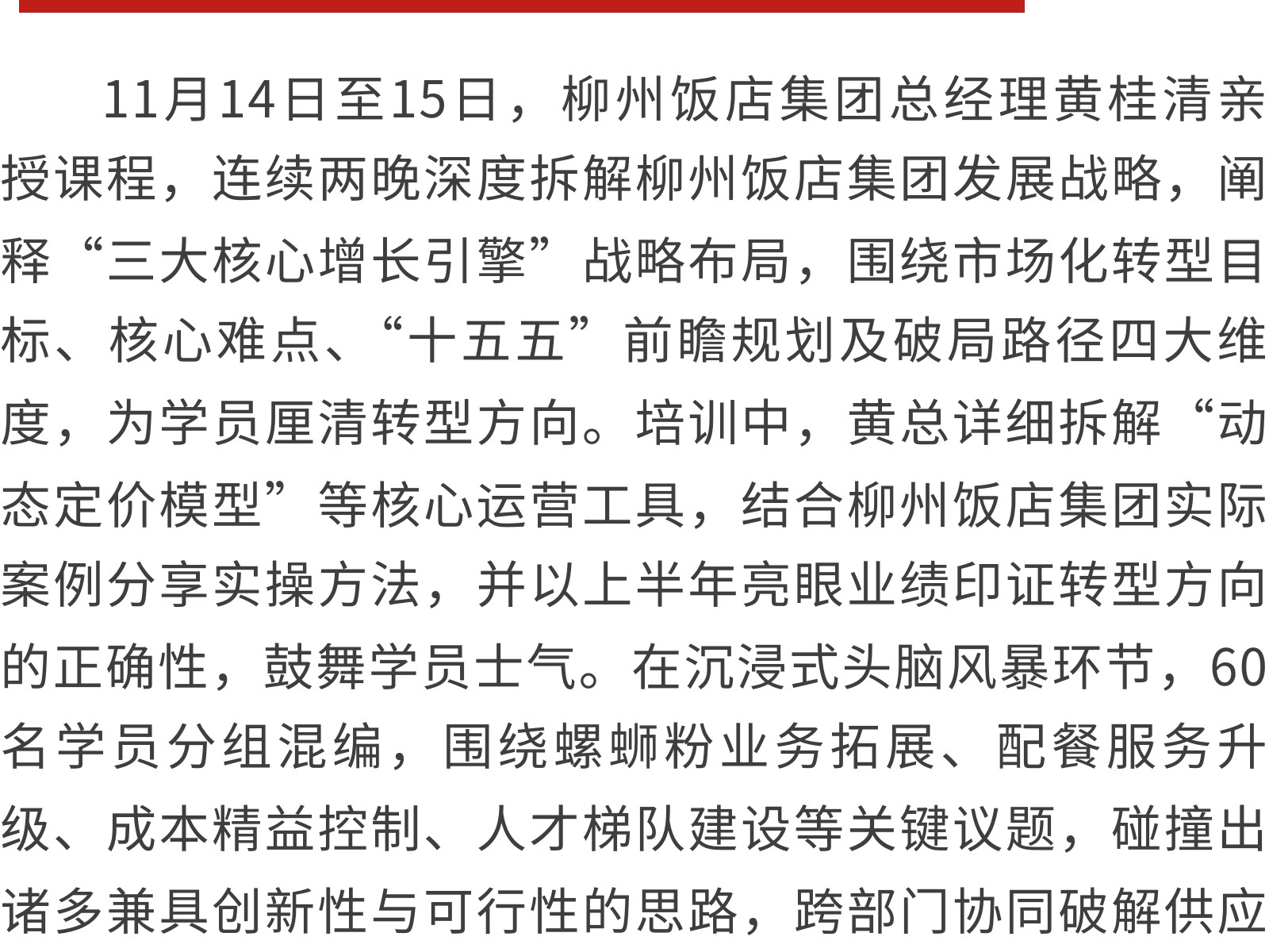 【同心致遠(yuǎn),聚力前行】柳州飯店集團(tuán)中層管理干部團(tuán)隊凝聚力系列專項培訓(xùn)圓滿收官 發(fā)布時間:2025年12月01日 09時來源:本站原創(chuàng)瀏覽:24 人次