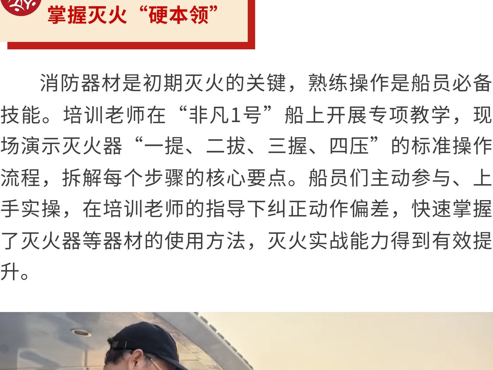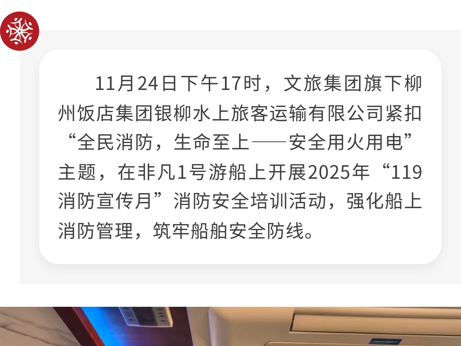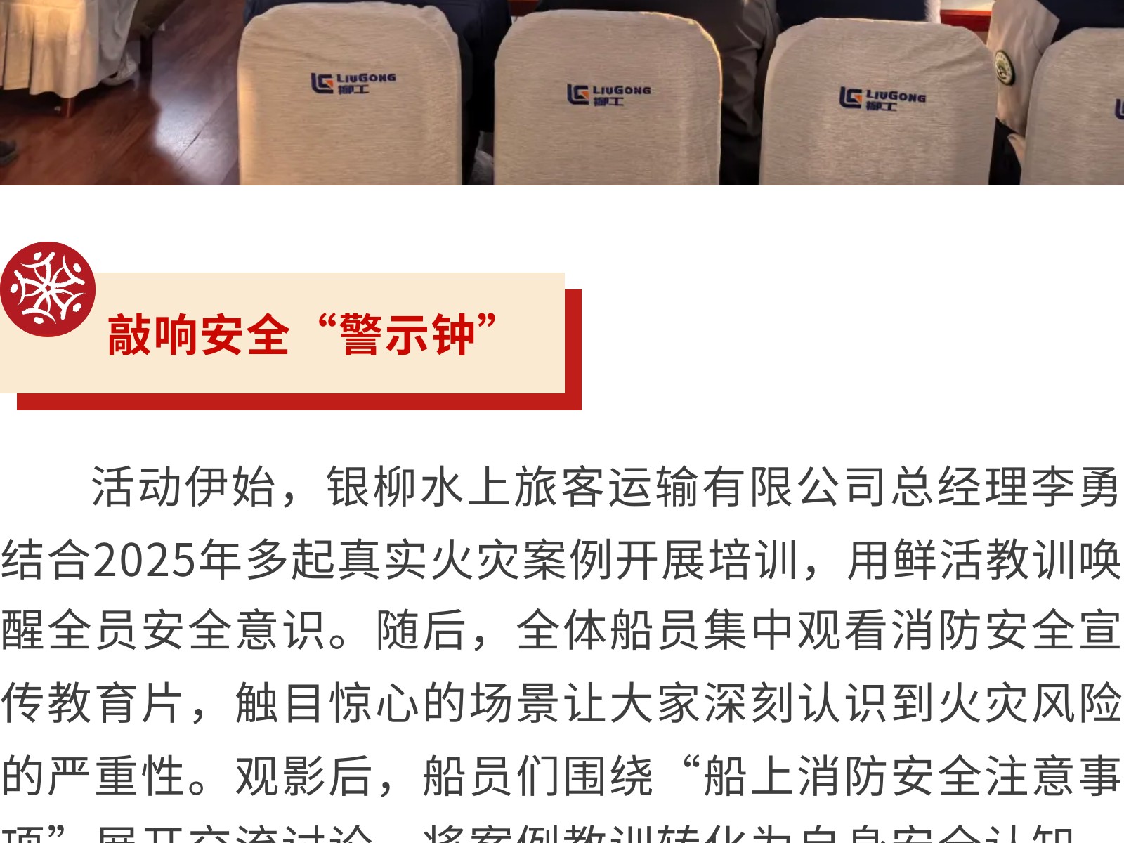 【強化船上消防,守護航行安全】銀柳水上旅客運輸有限公司開展消防安全培訓(xùn)活動 發(fā)布時間:2025年12月09日 10時來源:本站原創(chuàng)瀏覽:69 人次