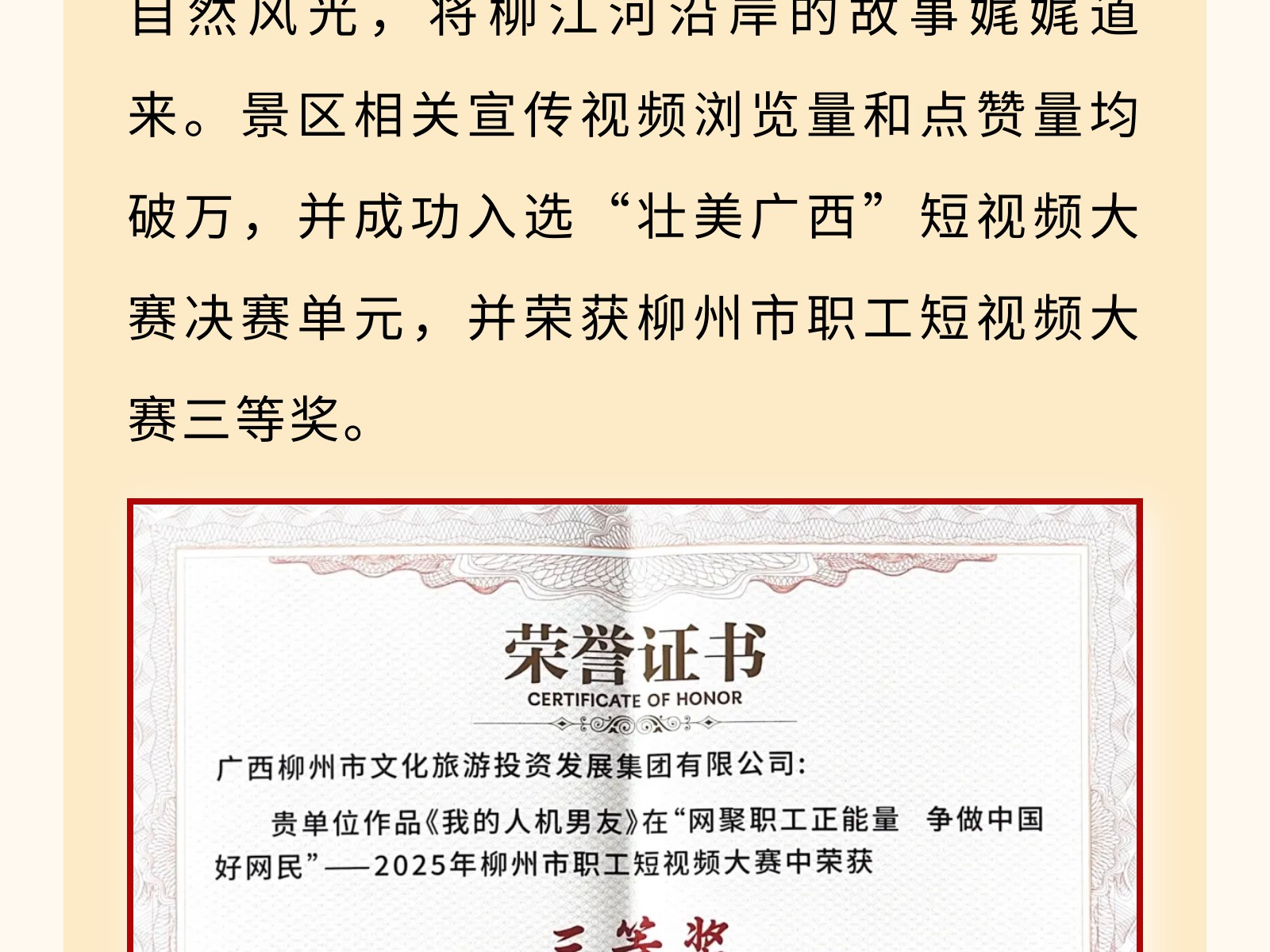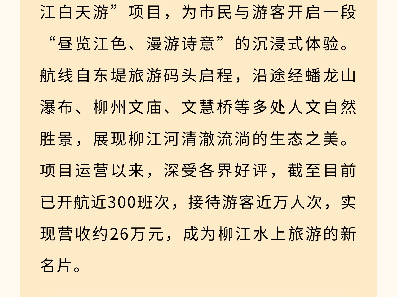 【文旅聚勢(shì)2025】碧水映城,風(fēng)帆勁起——百里柳江公司書寫文旅融合新篇章 發(fā)布時(shí)間:2025年12月25日 10時(shí)來源:本站原創(chuàng)瀏覽:95 人次