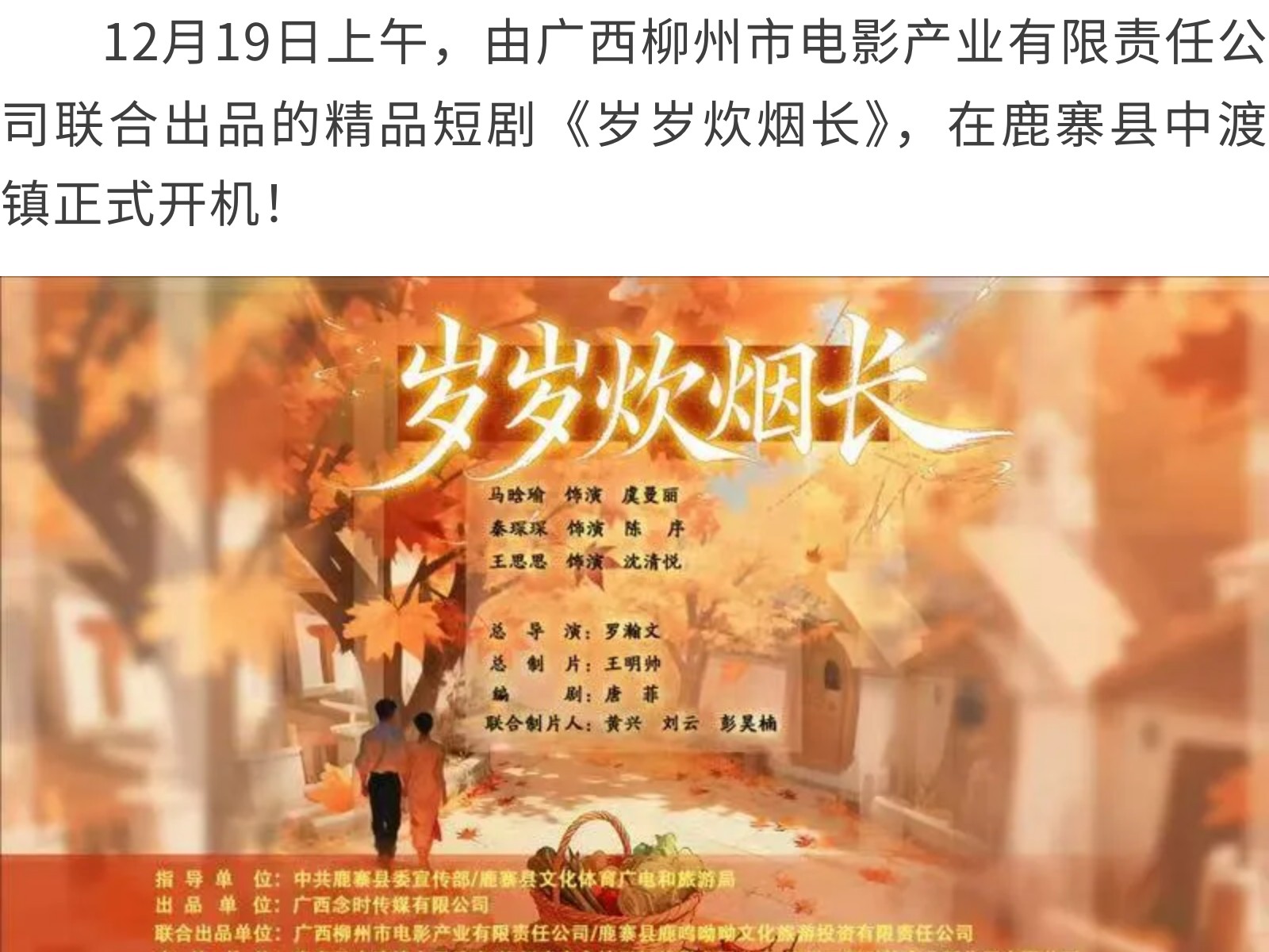 火力全開!精品短劇《歲歲炊煙長》柳州熱拍,文旅融合力作值得期待 發(fā)布時間:2025年12月27日 11時來源:本站原創(chuàng)瀏覽:50 人次