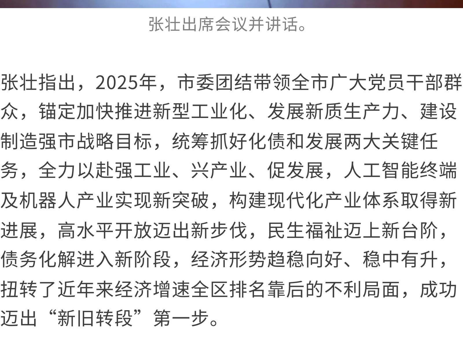 張壯在全市經(jīng)濟(jì)工作會議上強(qiáng)調(diào),今年要重點(diǎn)抓好八方面工作,確保“十五五”開好局、起好步 發(fā)布時(shí)間:2026年01月05日 13時(shí)來源:本站原創(chuàng)瀏覽:12 人次