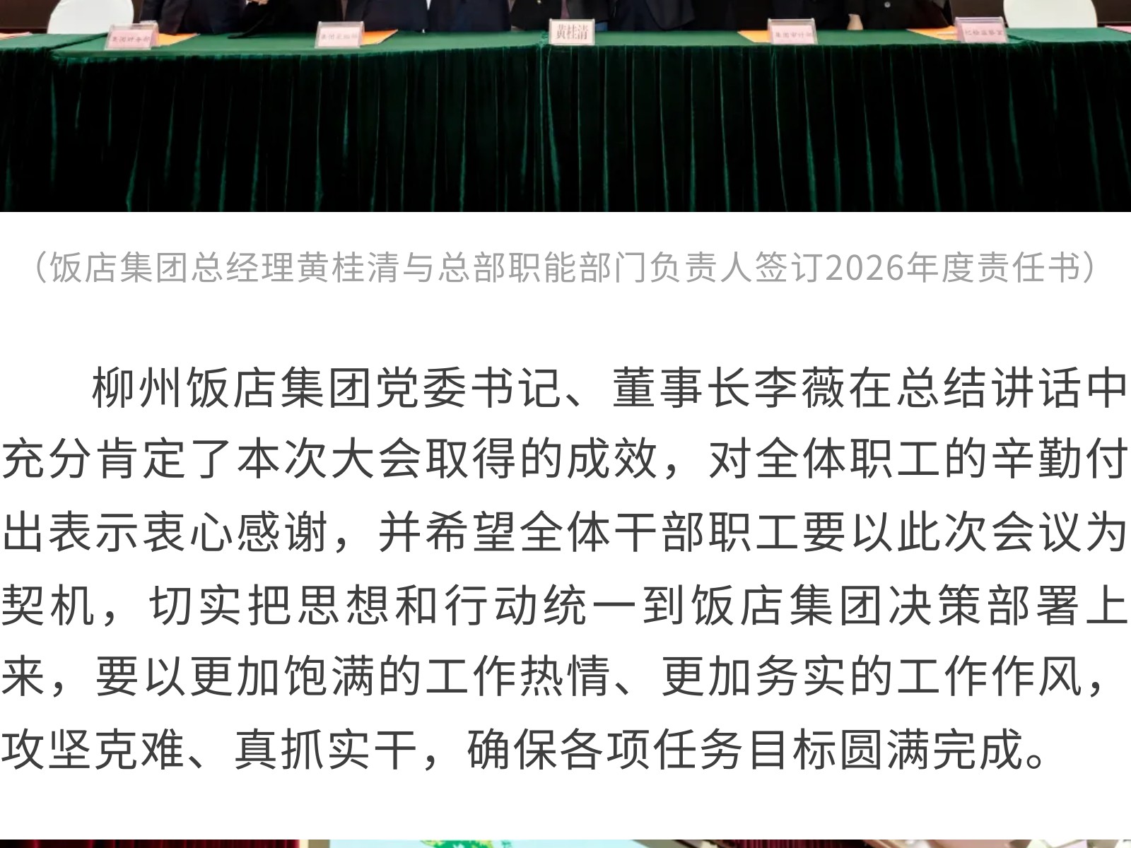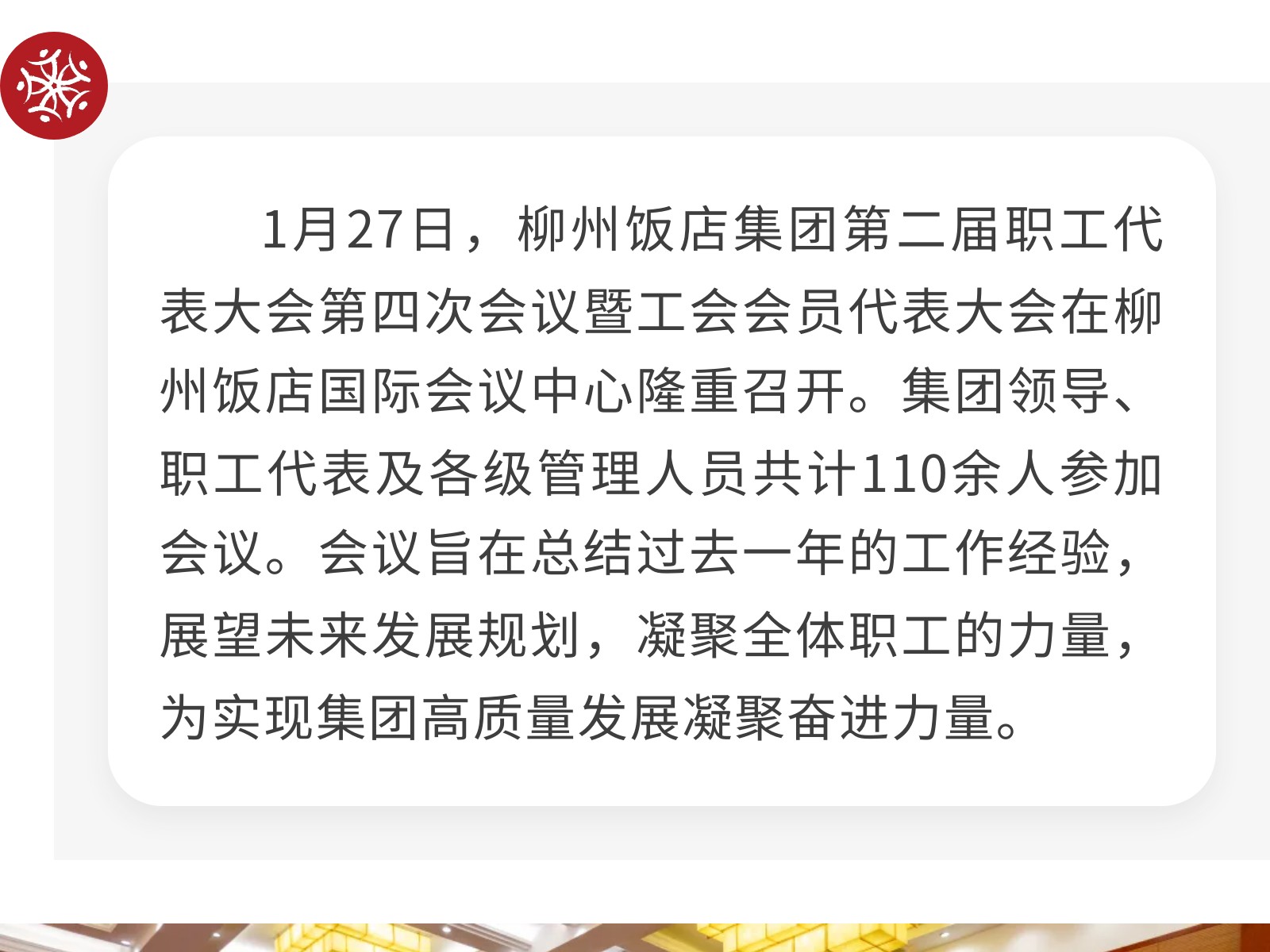 錨定新目標(biāo) 凝心聚力啟新程——柳州飯店集團(tuán)第二屆職工代表大會第四次會議暨工會會員代表大會勝利召開 發(fā)布時(shí)間:2026年01月30日 10時(shí)來源:本站原創(chuàng)瀏覽:83 人次