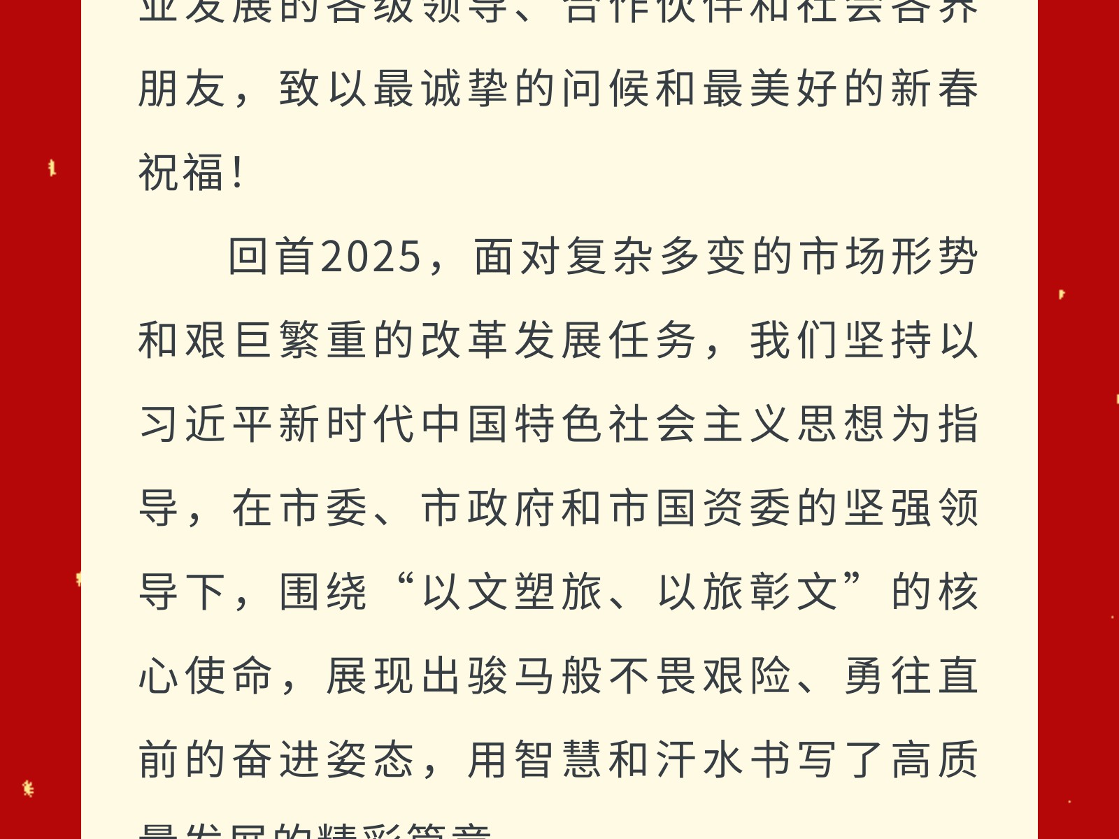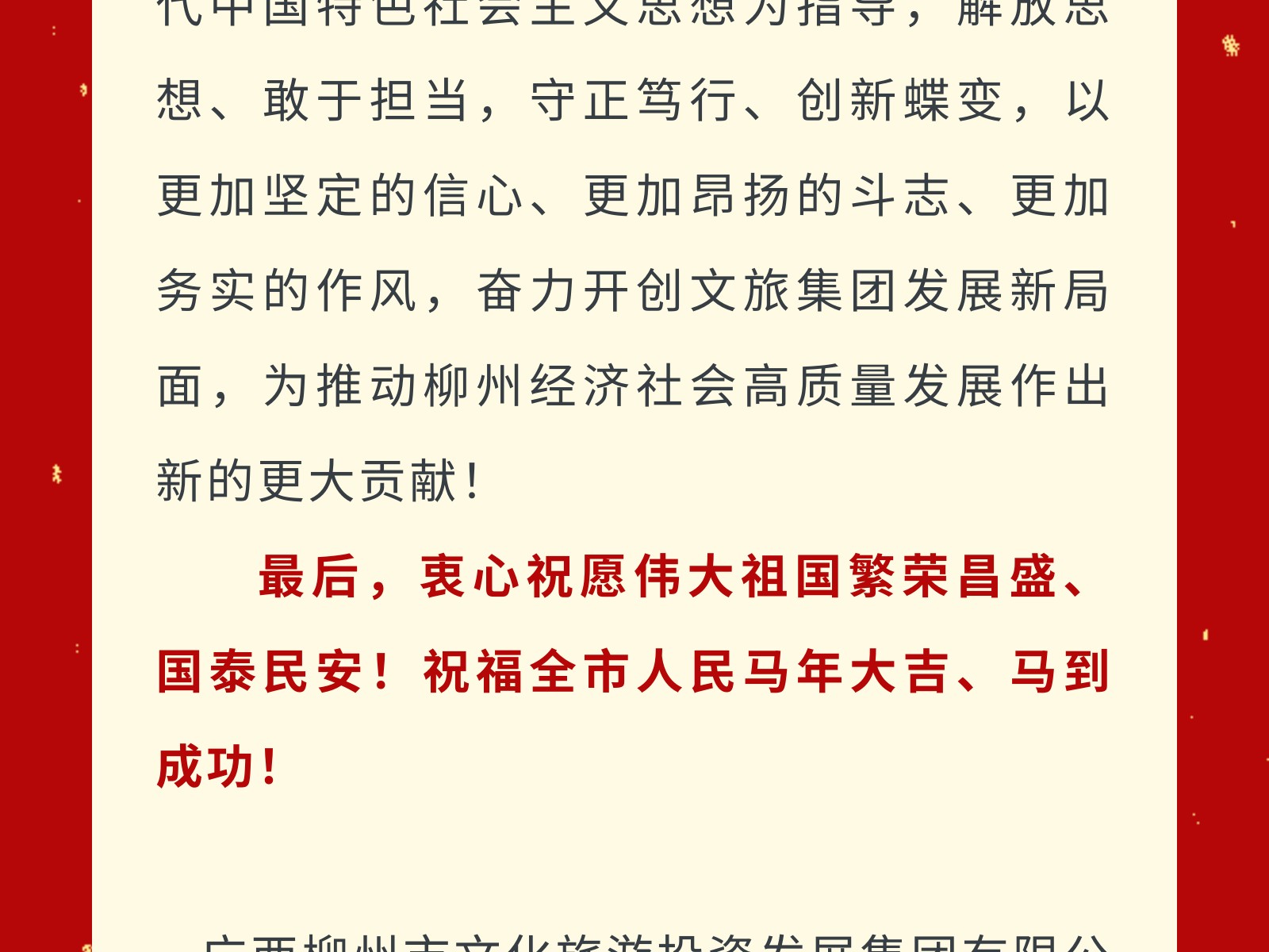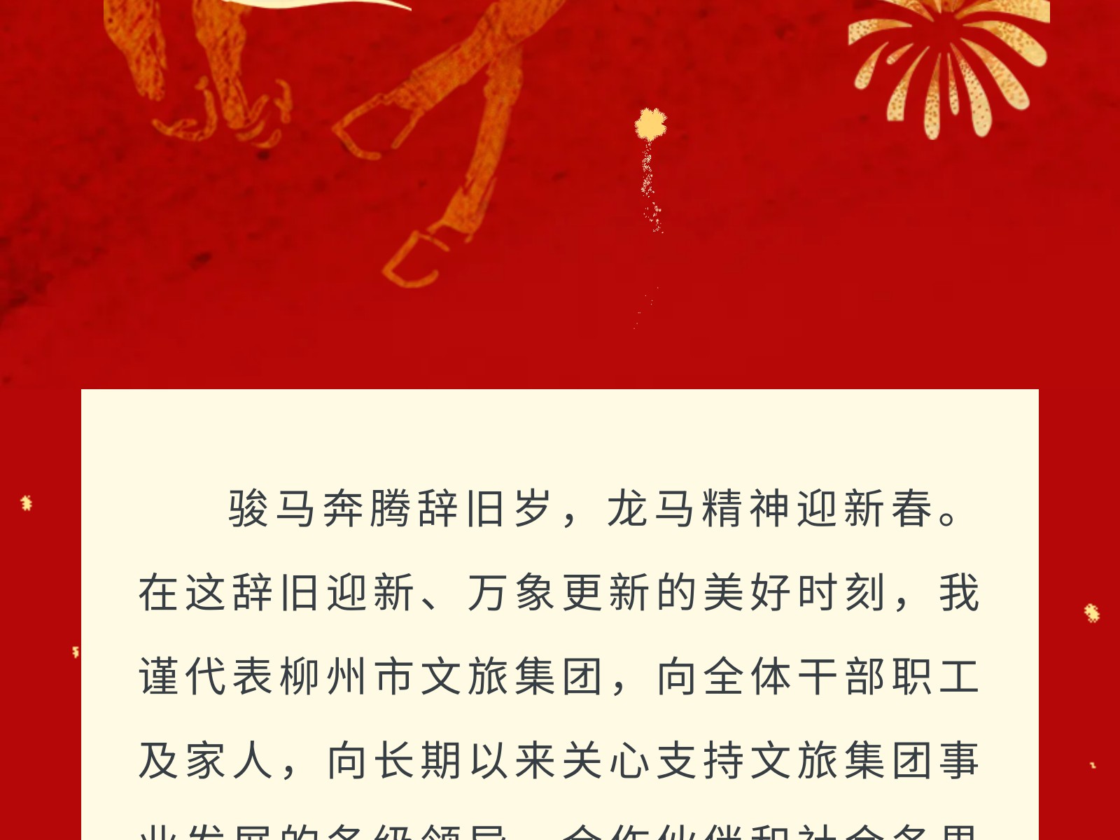 柳州文旅集團新春賀詞 發(fā)布時間:2026年02月16日 13時來源:本站原創(chuàng)瀏覽:41 人次