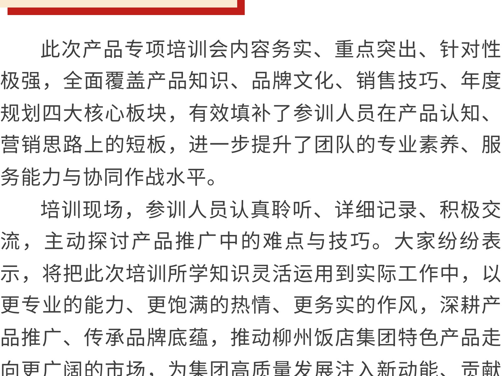 【以學(xué)賦能,驅(qū)動(dòng)未來(lái)】“柳飯學(xué)院”第三期產(chǎn)品培訓(xùn)會(huì)圓滿落幕,為新征程注入強(qiáng)勁動(dòng)力 發(fā)布時(shí)間:2026年03月05日 10時(shí)來(lái)源:本站原創(chuàng)瀏覽:55 人次